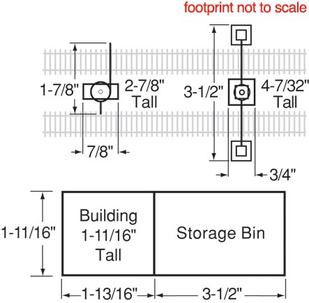 Measures: Early Sanding Tower: 1-7/8 x 7/8 x 2-7/8" 4.8 x 2.2 x 7.3cm Late Sanding Tower: 3-1/2 x 3/4 x 4-7/32" 8.9 x 1.9 x 10.7cm Drying House: 1-11/16 x 1-13/16" 4.3 x 4.6cm Storage Bin: 1-11/16 x 3-1/2" 4.3 x 8.9cm